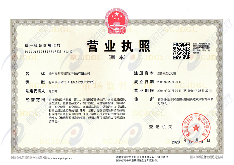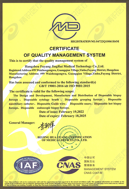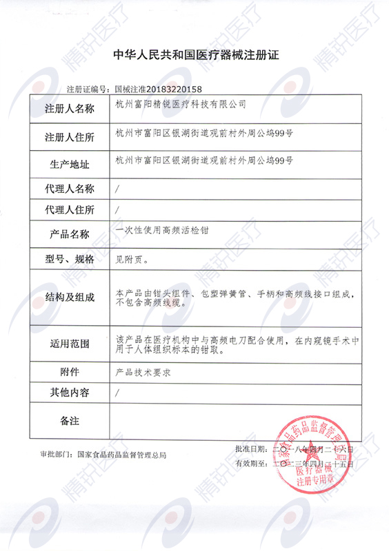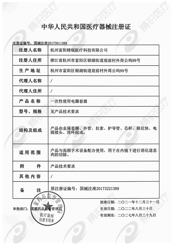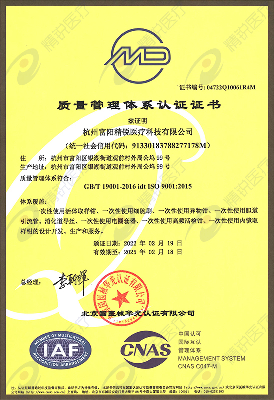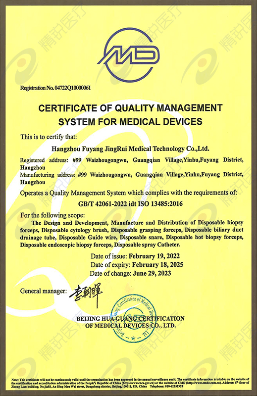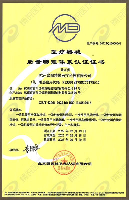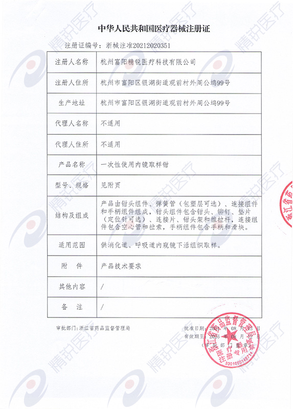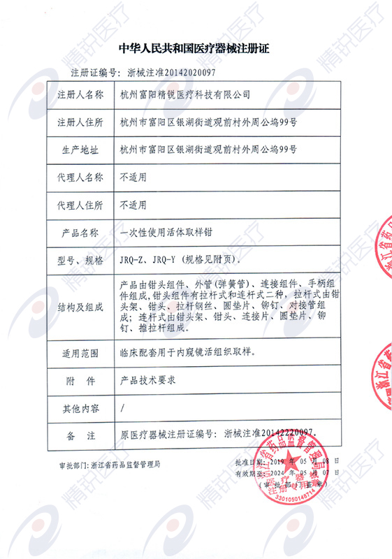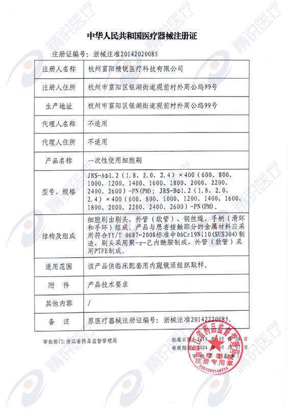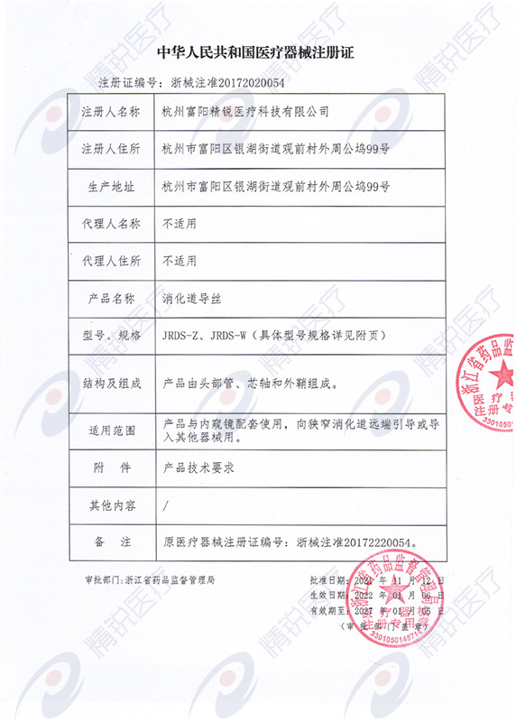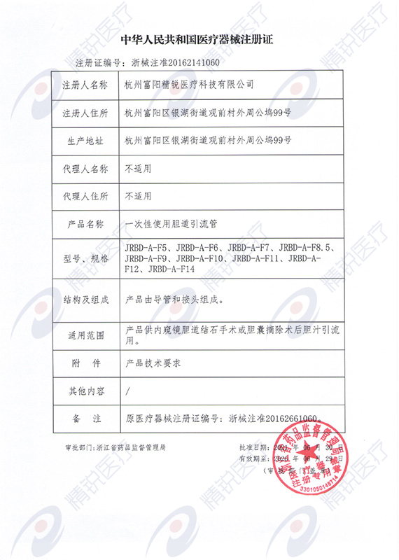 一次性使用膽道引流管注冊(cè)證(浙械注準(zhǔn)20162141060)